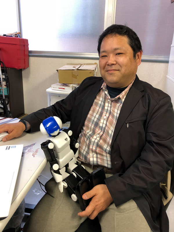 2004年より二足歩行ロボットを製作開始。自動車部品メーカーの生産技術部にて産業用自動機器を製作していた経験から、二足歩行ロボットの設計および機械加工、プログラミングまでをおこなうエンジニア。